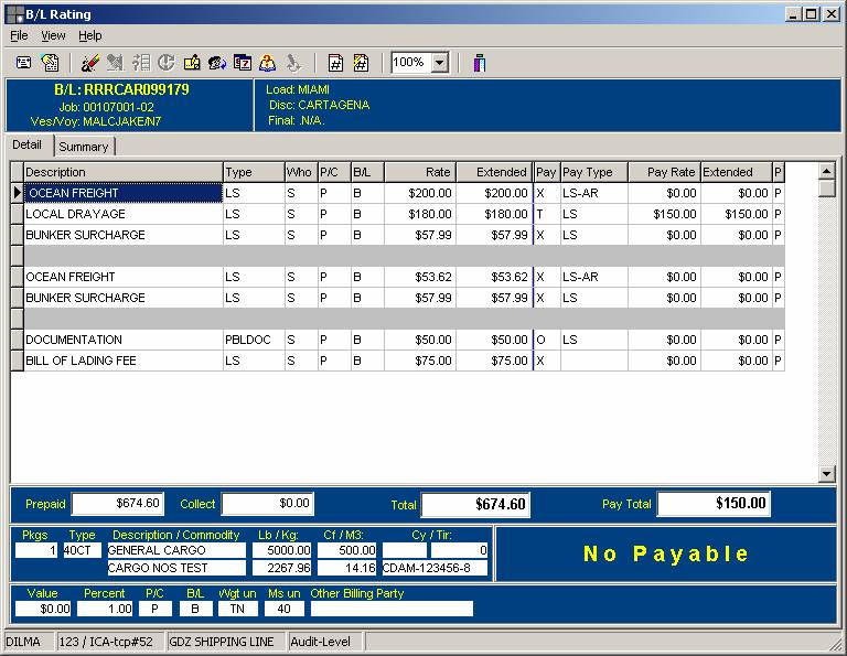 information if the Bill of lading has been rated and posted. It also shows