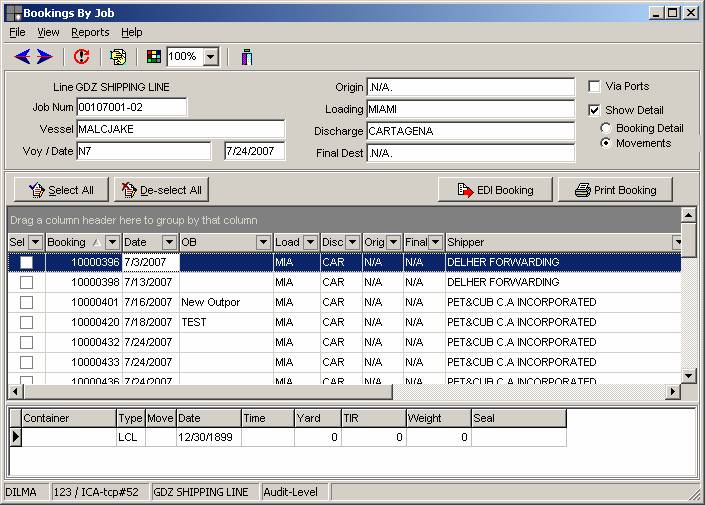 The Booking by Job number,