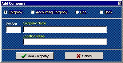 The CMS company/line accounts are designated as such by their company numbers; CMS company numbers 1-99 are ‘Companies’. Companies have their own G/L and accounting information. CMS company numbers 100-999 are ‘Lines/Departments’. Lines are used in creating job numbers, container yards, equipment reports, etc., and departments are used as subsidiary G/L accounts. A Company can also be a line, but a line 100 or above cannot be a company.