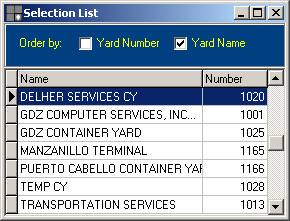 the container yard field, a list of options will appear, Yard List among them.