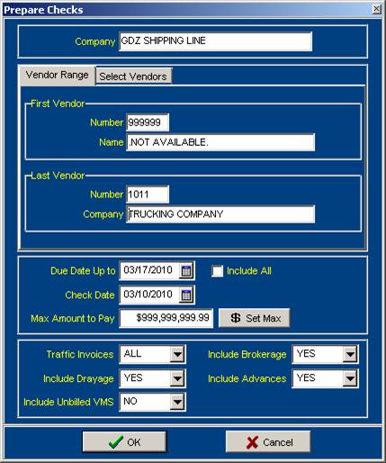 The first step is to run the Prepare Cash requirements or Prepare Invoices to review all invoices, either for a specific vendor, a range of vendors or all Vendors. Once all selection are defined, the program with display an exception report that will include a list of invoices that are not selected to be paid for different reasons: An un-posted line item; vendor in use by other station, invoice not approved to be paid, etc.
