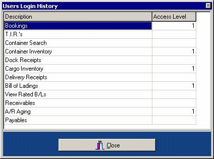 The following windows shows the list of modules that the highlighted user has access to, meaning that the user will have access to print and view all these documents