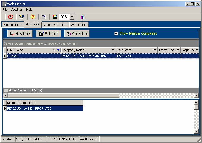companies, users and security. As the new users are created, the system can