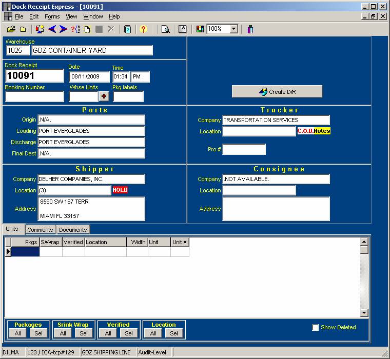 There is a button that is called Create D/R, which will create the actual dock receipt, based on the express information that was captured. Once this button is selected, the dock receipt entry screen opens with the information captured in the express document. The rest needs to be entered at this point with more detail. The express document disappears from the list, which is a way to review the documents that are pending to create