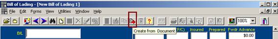 Another possible scenario is that the customer arrives with a booking and there is neither B/L nor invoice. In this case the program will require a B/L.number, which can be easily assigned by using the create from document(in this case booking or dock receipt) in the B/L
