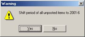 If yes is selected, all the un-posted line items will change the period to the selected one. If No is selected; only the line where the cursor is at, will be changed.